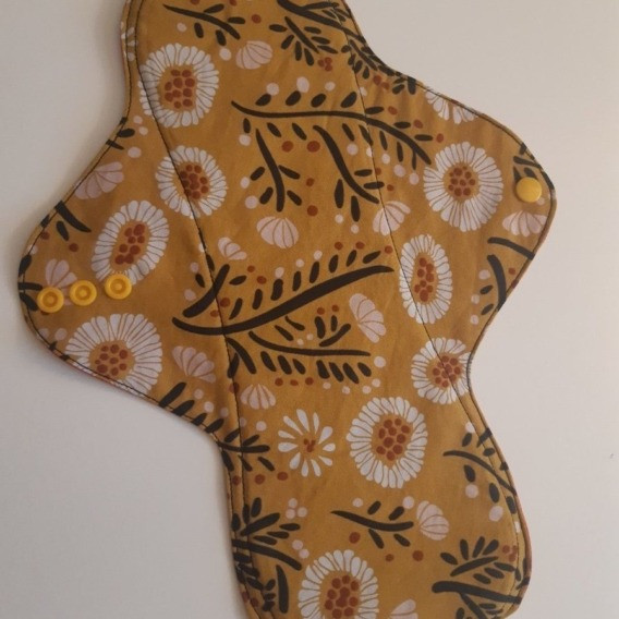 5. Serviette hygiénique en coton bio lavable Fleurs Moutardes - Plus - 32 cm