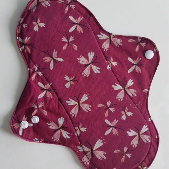 5. Serviette hygiénique en coton bio lavable Papillon Violet - Maxi - 26,8 cm